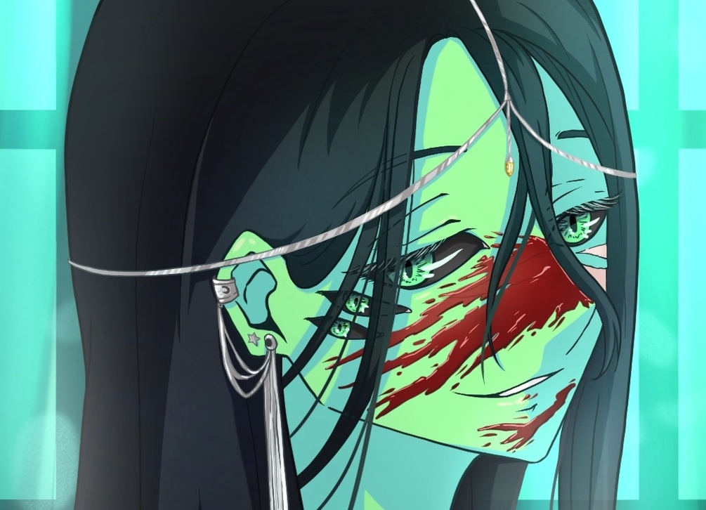 The Monster Girl Illustration as a Phone Wallpaper. With and without blood